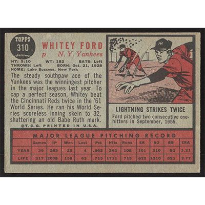 This is a 1962 Topps Whitey Ford baseball card. The card is #310 and pictures show condition.