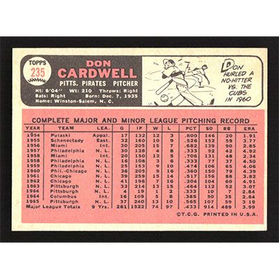 This is a 1966 Topps Don Cardwell baseball card. The card is #235 and pictures show condition.