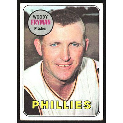 This is a 1969 Topps Woody Fryman baseball card. The card is #51 and pictures show condition.