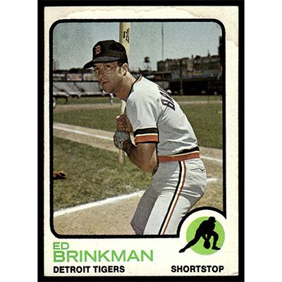 This is a 1973 Topps Ed Brinkman Miscut baseball card. The card is #5 and pictures show condition.