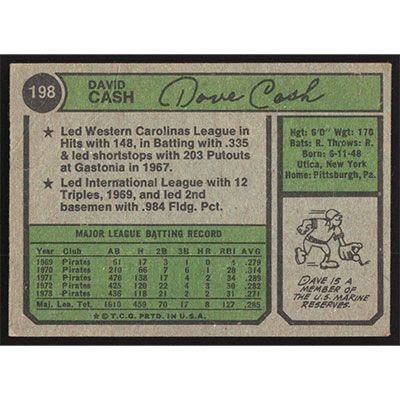 This is a 1974 Topps Dave Cash baseball card. The card is #198 and pictures show condition.