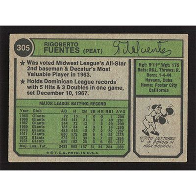 This is a 1974 Topps - 2015 Original Buyback Tito Fuentes baseball card. The card is #305 and pictures show condition.