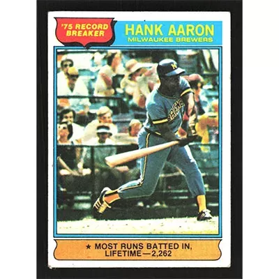 This is a 1976 Topps Hank Aaron baseball card. The card is #1 and pictures show condition.