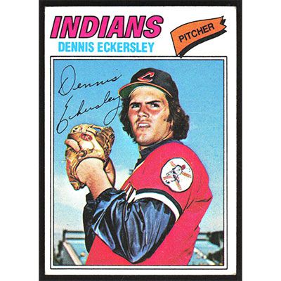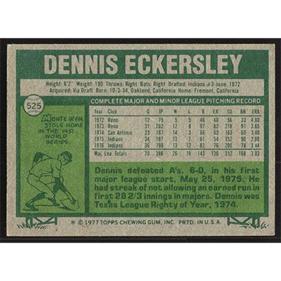 This is a 1977 Topps Dennis Eckersley baseball card. The card is #525 and pictures show condition.