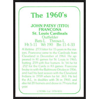 This is a 1978 TCMA 60's Tito Francona baseball card. The card is #231 and pictures show condition.
