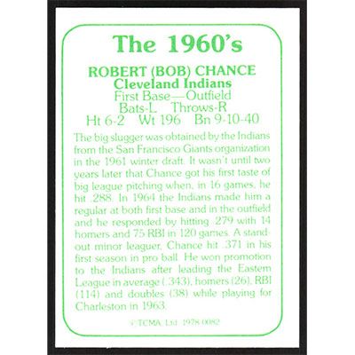 This is a 1978 TCMA 60's I Bob Chance baseball card. The card is #82 and pictures show condition.