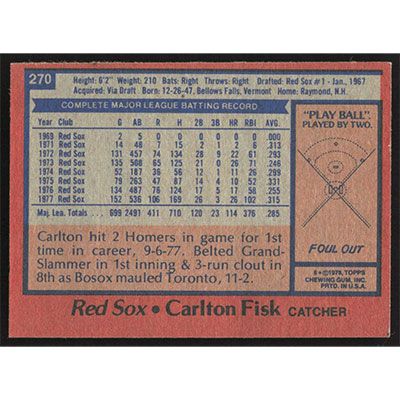 This is a 1978 Topps Carlton Fisk baseball card. The card is #270 and pictures show condition.