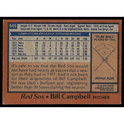 This is a 1978 Topps Bill Campbell baseball card. The card is #545 and pictures show condition.
