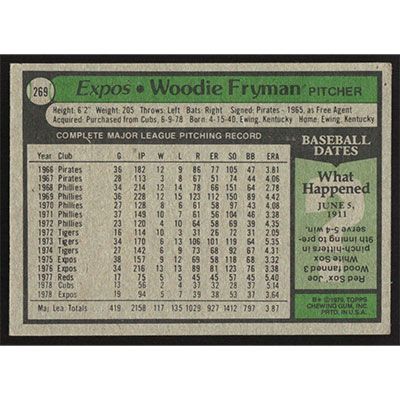This is a 1979 Topps Woodie Fryman baseball card. The card is #269 and pictures show condition.