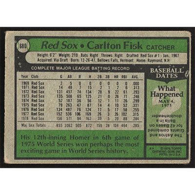 This is a 1979 Topps Carlton Fisk All-Star baseball card. The card is #680 and pictures show condition.