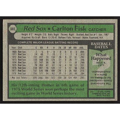 This is a 1979 Topps Carlton Fisk All-Star baseball card. The card is #680 and pictures show condition.