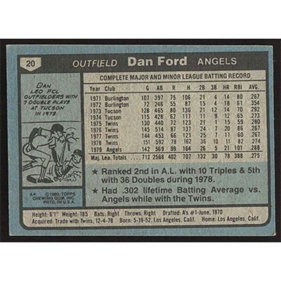 This is a 1980 Topps Dan Ford baseball card. The card is #20 and pictures show condition.