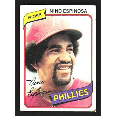 This is a 1980 Topps Nino Espinosa baseball card. The card is #447 and pictures show condition.