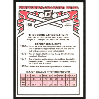 This is a 1981 Donruss Jerry Garvin baseball card. The card is #150 and pictures show condition.