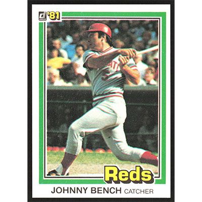 This is a 1981 Donruss Johnny Bench baseball card. The card is #182 and pictures show condition.