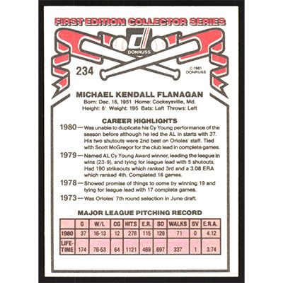 This is a 1981 Donruss Mike Flanagan baseball card. The card is #234 and pictures show condition.