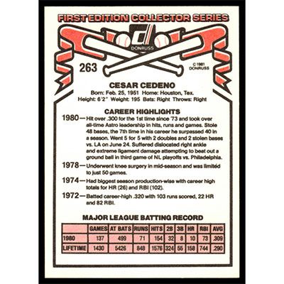 This is a 1981 Donruss Cesar Cedeno baseball card. The card is #263 and pictures show condition.