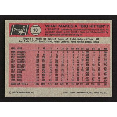 This is a 1981 Drake's Bill Buckner baseball card. The card is #13 and pictures show condition.