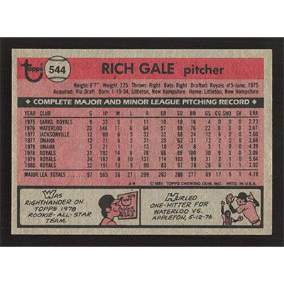 This is a 1981 Topps Rich Gale baseball card. The card is #544 and pictures show condition.