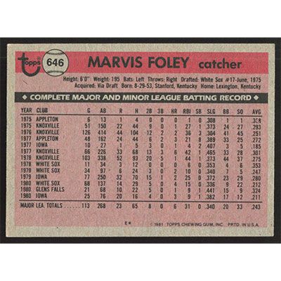 This is a 1981 Topps Marvis Foley baseball card. The card is #646 and pictures show condition.
