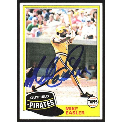 This is a 1981 Topps Mike Easler autographed baseball card. This card has been signed, in blue, by Mike Easler, and is guaranteed authentic by Ballcardz.com. The card is #92 and pictures show condition.