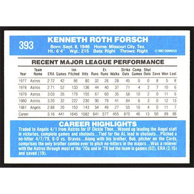 This is a 1982 Donruss Ken Forsch baseball card. The card is #393 and pictures show condition.