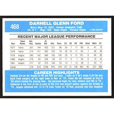 This is a 1982 Donruss Dan Ford baseball card. The card is #468 and pictures show condition.