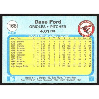 This is a 1982 Fleer Dave Ford baseball card. The card is #166 and pictures show condition.