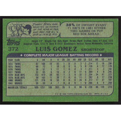 This is a 1982 Topps Luis Gomez baseball card. The card is #372 and pictures show condition.