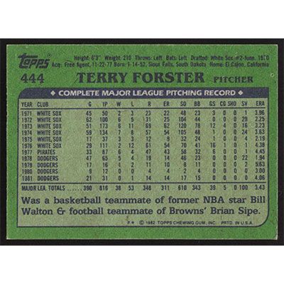 This is a 1982 Topps Terry Forster baseball card. The card is #444 and pictures show condition.