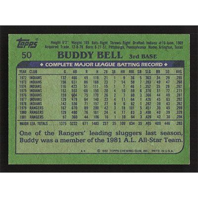 This is a 1982 Topps Buddy Bell baseball card. The card is #50 and pictures show condition.