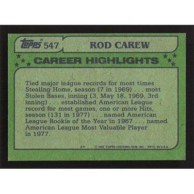 This is a 1982 Topps Rod Carew All-Star baseball card. The card is #547 and pictures show condition.