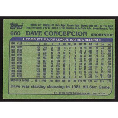 This is a 1982 Topps Dave Concepcion baseball card. The card is #660 and pictures show condition.