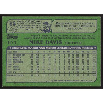 This is a 1982 Topps Mike Davis baseball card. The card is #671 and pictures show condition.