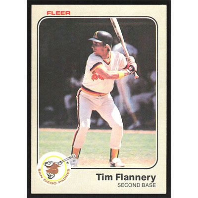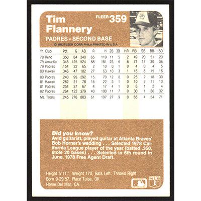 This is a 1983 Fleer Tim Flannery baseball card. The card is #359 and pictures show condition.