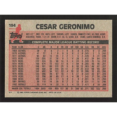 This is a 1983 Topps Cesar Geronimo baseball card. The card is #194 and pictures show condition.