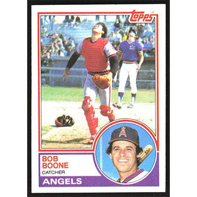 This is a 1983 Topps Bob Boone baseball card. The card is #765 and pictures show condition.