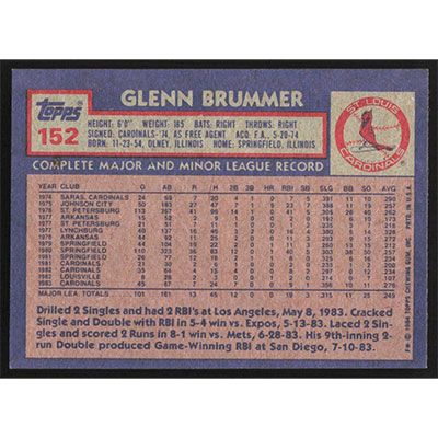 This is a 1984 Topps Glenn Brummer baseball card. The card is #152 and pictures show condition.