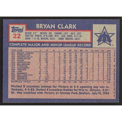 This is a 1984 Topps Bryan Clark baseball card. The card is #22 and pictures show condition.