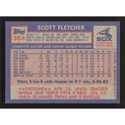This is a 1984 Topps Scott Fletcher baseball card. The card is #364 and pictures show condition.