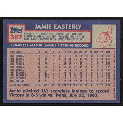 This is a 1984 Topps Jamie Easterly baseball card. The card is #367 and pictures show condition.