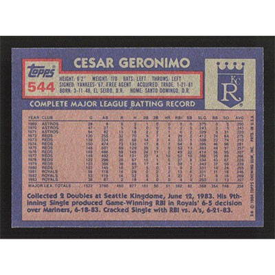 This is a 1984 Topps Cesar Geronimo baseball card. The card is #544 and pictures show condition.