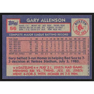 This is a 1984 Topps Gary Allenson baseball card. The card is #56 and pictures show condition.
