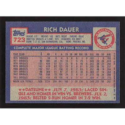 This is a 1984 Topps Rich Dauer baseball card. The card is #723 and pictures show condition.