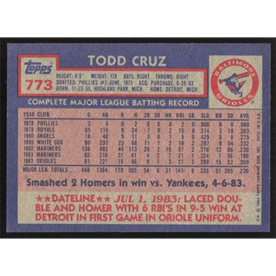 This is a 1984 Topps Todd Cruz baseball card. The card is #773 and pictures show condition.