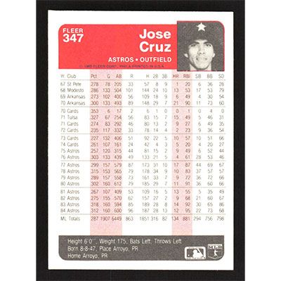 This is a 1985 Fleer Jose Cruz baseball card. The card is #347 and pictures show condition.