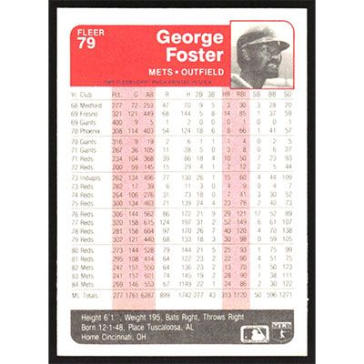 This is a 1985 Fleer George Foster baseball card. The card is #79 and pictures show condition.