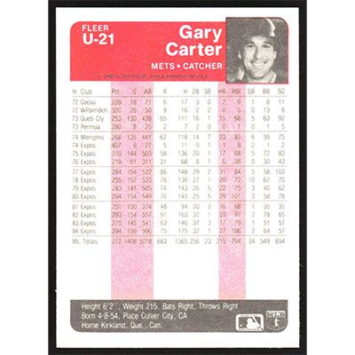 This is a 1985 Fleer Update Gary Carter baseball card. The card is #U-21 and pictures show condition.