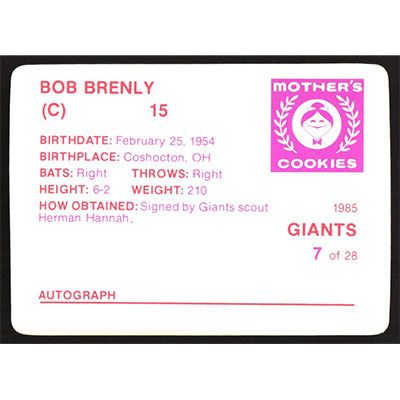 This is a 1985 Mother's Cookies Bob Brenly baseball card. The card is #7 and pictures show condition.
