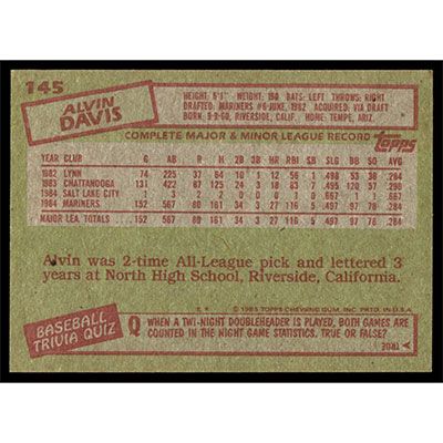 This is a 1985 Topps Alvin Davis baseball card. The card is #145 and pictures show condition.